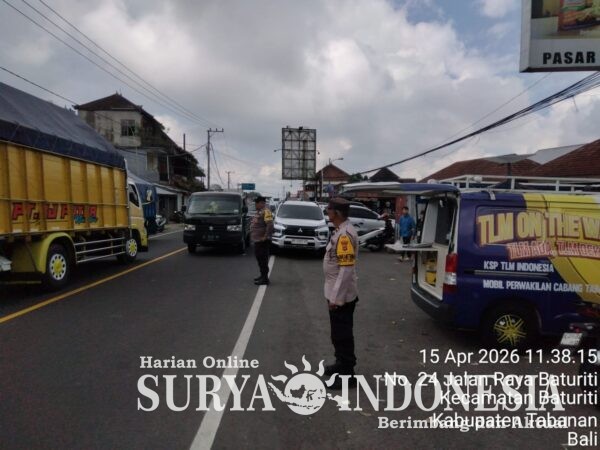 Polres Tabanan, Surya Indonesia.net – Polsek Baturiti melaksanakan kegiatan strong point siang pada Rabu, 15 April 2026 bertempat di Simpang Pasar Baturiti sebagai bentuk pelayanan kepada masyarakat dan upaya menjaga kelancaran arus lalu lintas di wilayah hukum Polsek Baturiti.