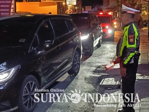 pengaturan malam hari di simpang – simpang rawan kemacetan. Selasa (14/4/2026) pukul 20.00 Wita.