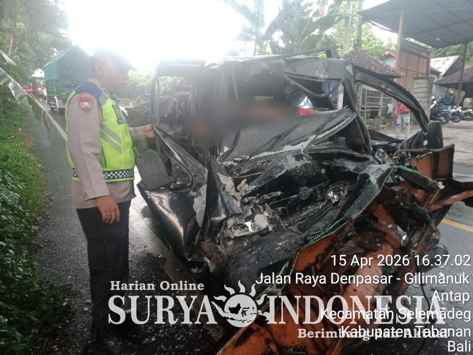 Polres Tabanan, Surya Indonesia.net – Polsek Selemadeg. Respon cepat ditunjukkan personel gabungan piket fungsi Polsek Selemadeg di bawah komando Pawas Iptu I Made Adiguna, S.Pd., saat menanggapi laporan kecelakaan lalu lintas (Laka Lantas) maut pada Rabu (15/4/2026). Insiden yang melibatkan kendaraan Pick Up Daihatsu DK 8414 DH dan Truck Mitsubishi N 8488 EW ini terjadi sekira pukul 15.48 Wita di Jalan Nasional jurusan Denpasar-Gilimanuk, tepatnya di Banjar Dinas Bonian, Desa Antap, Selemadeg. Kurang dari 20 Menit setelah laporan diterima, petugas telah berada di TKP untuk melakukan pengamanan dan pengaturan arus lalu lintas guna mencegah kemacetan panjang.