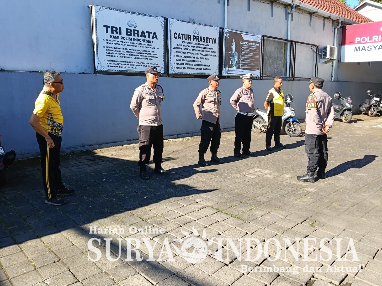 Kegiatan apel pagi dipimpin oleh Pawas IPTU I Putu Sukayasa, S.H. dengan memberikan arahan kepada seluruh personel agar tetap menjaga disiplin, meningkatkan kewaspadaan, serta melaksanakan tugas dengan penuh tanggung jawab.