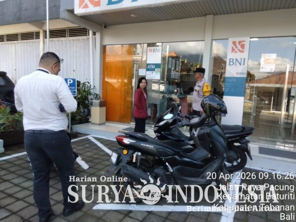 Polres Tabanan, Surya Indonesia.net – Polsek Baturiti melalui Bhabinkamtibmas Desa Baturiti melaksanakan kegiatan sambang dan door to door system di wilayah binaan pada Senin, 20 April 2026 pukul 09.00 Wita sampai dengan 09.30 Wita bertempat di Kantor Bank BNI Cabang Baturiti. Kegiatan ini dilakukan sebagai upaya mempererat komunikasi dengan petugas keamanan dan menjaga situasi kamtibmas tetap kondusif.