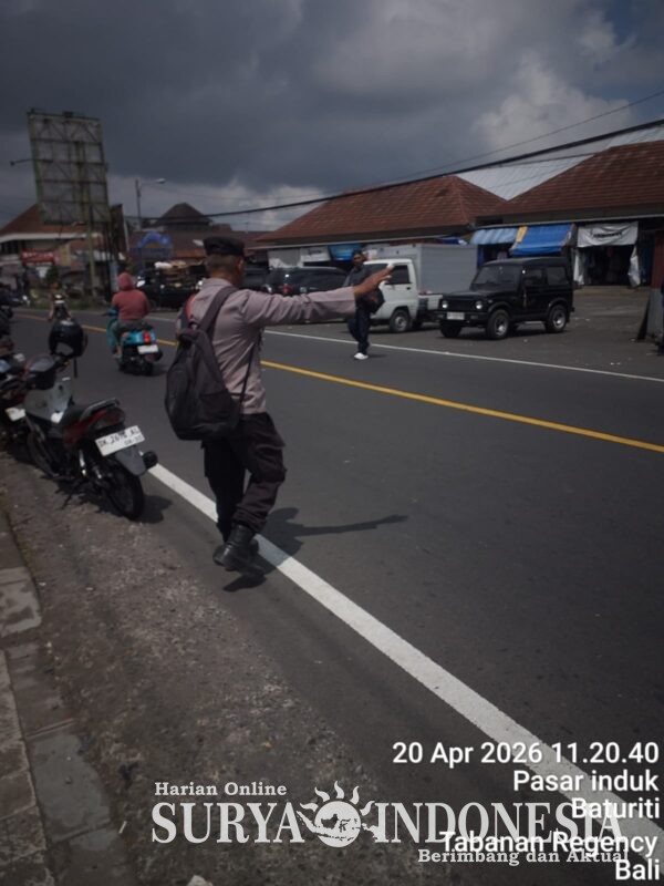 Polres Tabanan, Surya Indonesia.net – Polsek Baturiti melaksanakan kegiatan strong point siang pada Senin, 20 April 2026 pukul 11.30 Wita bertempat di depan Pasar Baturiti. Kegiatan ini dilakukan untuk mengantisipasi kepadatan arus lalu lintas pada jam aktivitas masyarakat di siang hari.