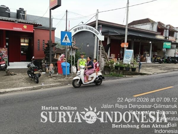 Polres Tabanan, Surya Indonesia.net – Polsek SelbarSuraberata, Rabu 22/4/2026 Pukul 07.00 s/d 08.00 wita Guna menjaga keamanan dan kelancaran lalu lintas, keramaian aktivitas masyarakat di pagi hari, Personel Polsek Selbar AIPTU I Made Utamayasa Laksanakan Strong Point di Depan Pasar Suraberata antisipasi Gangguan Kamtibmas di pagi hari demi keselamatan dan kelancaran pengguna jalan Raya di Kecamatan Selemadeg barat, Kabupaten Tabanan.