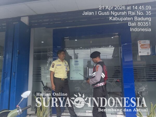 Mengwi, Surya Indonesia.net – Dalam upaya mencegah tindak kejahatan perbankan khususnya skimming, jajaran Polsek Mengwi melalui Unit Samapta melaksanakan kegiatan sambang dan koordinasi dengan petugas keamanan (satpam) di lingkungan Bank BRI Desa Mengwi, Kecamatan Mengwi, Kabupaten Badung. Selasa (21/4/2026)