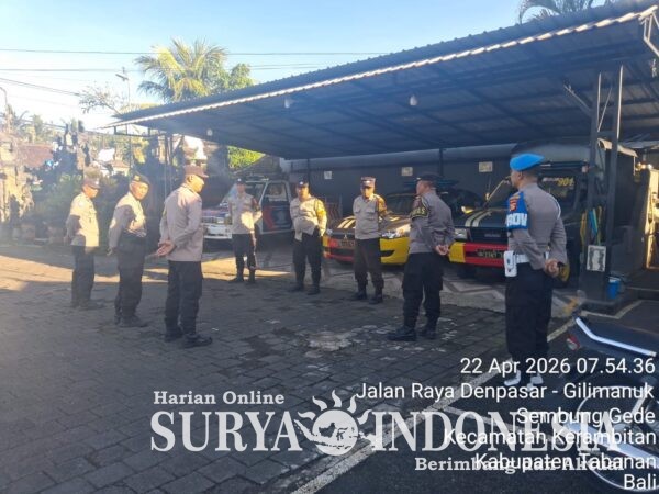 Polres Tabanan, Surya Indonesia.net – Polsek Kerambitan, Rabu 22 April 2026; Anggota Piket Jaga Baru dan Piket Jaga Lama Polsek Kerambitan dipimpin oleh Perwira Pengawas (Pawas) AKP I Wayan Subagia, S.H melaksanakan acara serah terima tugas jaga bertempat di Halaman Mako Polsek Kerambitan.
