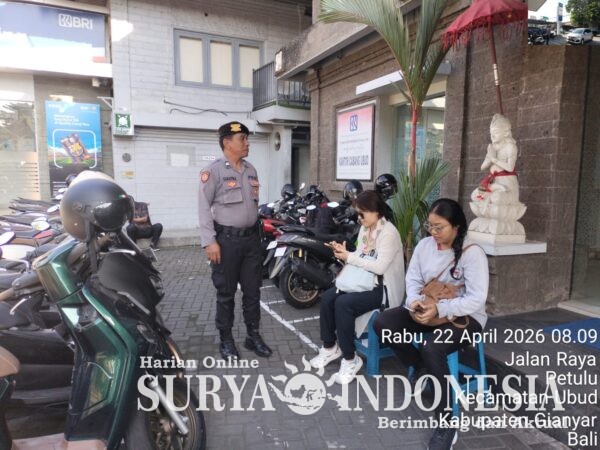 Gianyar, Surya Indonesia.net – Satuan Pengamanan Objek Vital (Sat Pamobvit) Polres Gianyar melaksanakan kegiatan pengamanan objek vital perbankan pada Rabu, 22 April 2026, mulai pukul 08.00 Wita hingga 20.00 Wita. Kegiatan ini dilaksanakan berdasarkan Surat Perintah Kapolres Gianyar Nomor: Sprin/488/III/PAM.1.3/2026 tanggal 31 Maret 2026 tentang pengamanan objek vital/perbankan.
