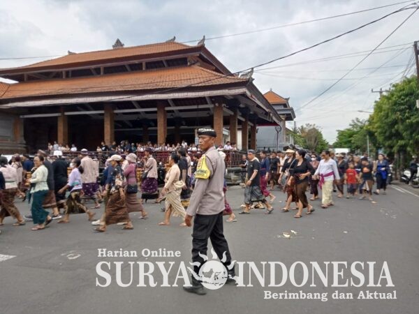 BLAHBATUH, Surya Indonesia.net – GIANYAR, Dalam rangka menjaga situasi kamtibmas tetap kondusif, Bhabinkamtibmas Desa Medahan Aiptu I Made Sudiarta bersinergi bersama Babinsa serta Pecalang Desa Adat Medahan melaksanakan pengamanan dan pengaturan arus lalu lintas pada kegiatan Upacara Adat Pitra Yadnya (Ngaben), Selasa, 21 April 2025, bertempat di wewidangan Desa Adat Medahan, Kecamatan Blahbatuh, Kabupaten Gianyar.