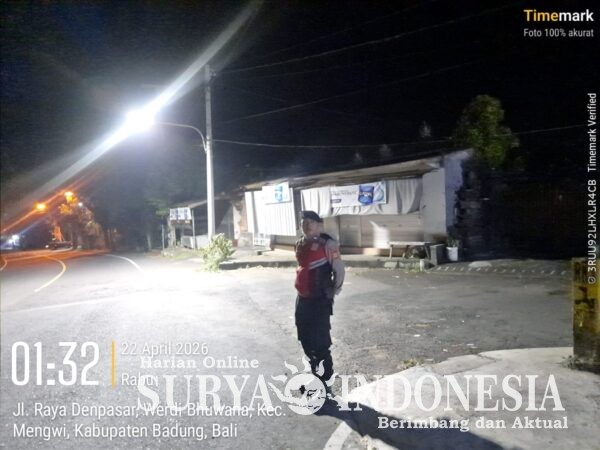 Mengwi, Surya Indonesia.net – Polsek Mengwi terus mengintensifkan kegiatan patroli subuh di wilayah hukumnya Dalam upaya menjaga situasi keamanan dan ketertiban masyarakat (kamtibmas) tetap kondusif, Kegiatan ini difokuskan pada titik-titik rawan guna mencegah terjadinya potensi gangguan kamtibmas, terutama pada jam-jam rawan menjelang pagi hari. Rabu dini hari (22/4/2026).