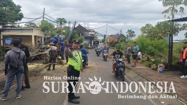 Kuta Selatan, Surya Indonesia.net– Cuaca ekstrem berupa hujan lebat disertai an*ANGIN KENCANG PICU POHON TUMBANG DI PECATU, TIMPA TIANG LISTRIK DAN SEPEDA MOTOR*gin kencang menyebabkan sebuah pohon tumbang di Jalan Labuan Sait, Desa Pecatu, Kecamatan Kuta Selatan, Kabupaten Badung, Selasa (21/4/2026) sekitar pukul 15.20 Wita. Insiden tersebut sempat mengganggu aktivitas masyarakat di sekitar lokasi kejadian.