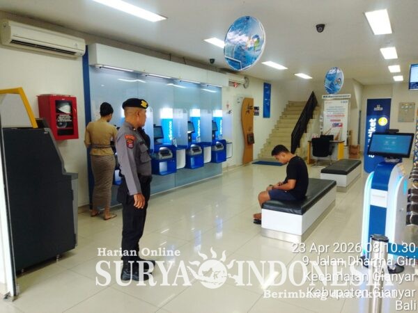Gianyar, Surya Indonesia.net – Upaya menjaga stabilitas keamanan dan ketertiban masyarakat (kamtibmas) terus ditingkatkan oleh jajaran Satuan Pengamanan Objek Vital (Pamobvit) Polres Gianyar melalui pengamanan intensif di sektor perbankan, Kamis (23/4/2026).