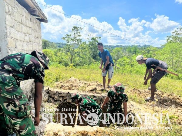 Antusias Warga Desa Umbu Wangu Bersama Personel Satgas TMMD Yang ke 128 Melaksanakan Pembuatan MCK