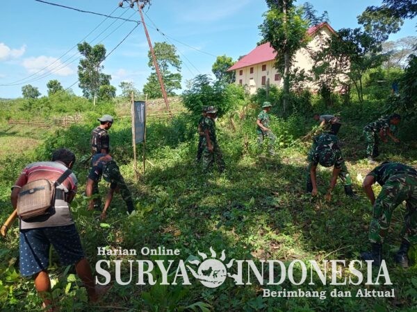 Terlihat semangat gotong royong antara TNI dan masyarakat dalam menyiapkan lahan, mulai dari pemotongan semak belukar hingga perataan area.