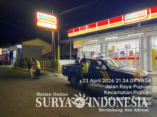 Polres Tabanan, Surya Indonesia.net – Polsek Pupuan, Kamis 23 April 2026 pukul 22.30 s/d 00.45 Wita, sebagai upaya berkelanjutan dalam menjaga situasi kamtibmas tetap aman dan kondusif, Polsek dipimpin Pawas IPDA I Putu Wiramaja dengan 3 (tiga) personel menggunakan mobil patroli melaksanakan giat patroli malam guna mencegah potensi gangguan keamanan di wilayah hukum.