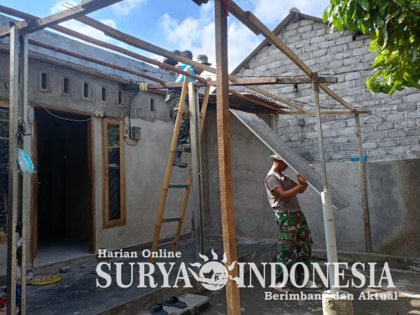 Adapun pengerjaan yang dilakukan meliputi penggantian atap rumah yang sudah tidak layak, peninggian tembok, pembuatan kamar, serta pekerjaan plester dan pengecatan. Seluruh proses ini dikerjakan secara gotong royong oleh personel Satgas TMMD bersama masyarakat setempat.