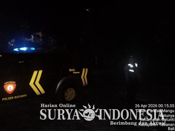 Polres Tabanan, Surya Indonesia.net – Polsek Baturiti, Minggu (26/4/2026) menindaklanjuti laporan masyarakat melalui Call Center 110 terkait adanya dugaan trek-trekan di kawasan Short Cut Bedugul, Kecamatan Baturiti, pada Sabtu, 25 April 2026 pukul 23.49 Wita.