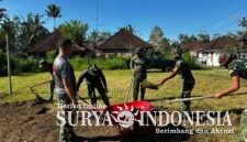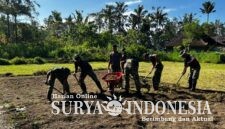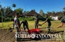 Ratakan tanah, Satgas TMMD ke – 128 Kodim 1623/Karangasem bangun lapangan voly di Dusun Kubakal, Desa Pempatan.