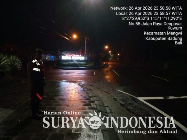 Mengwi, Surya Indonesia.net  – Dalam rangka menjaga situasi kamtibmas tetap aman dan kondusif, personel Samapta Polsek Mengwi melaksanakan kegiatan Blue Light Patrol dengan menyusuri jalur utama Denpasar–Singaraja pada malam hari. Minggu (26/4/2026) malam