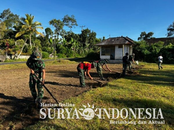 Karangasem , Surya Indonesia.net – Guna mempererat kemanunggalan TNI – Rakyat, Satgas TMMD ke – 128 Kodim 1623/Karangasem melaksanakan pembuatan lapangan voli bertempat di Dusn Kubakal, Desa Pempatan, Kec.Rendang, Kab.Karangasem pada Senin (27/04/26)
