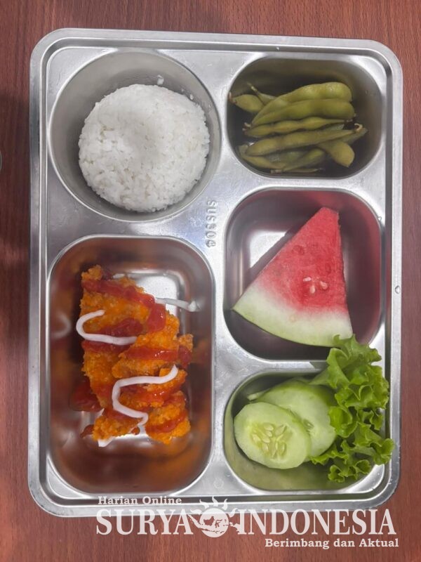 Adapun menu yang diperiksa terdiri dari nasi putih, ayam goreng tepung isi saus, edamame, lalapan selada dan timun, serta buah semangka. Seluruhnya dinyatakan memenuhi standar keamanan pangan.