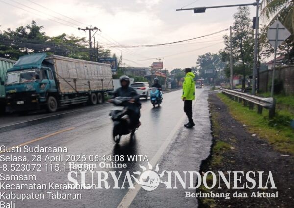 Polres Tabanan, Surya Indonesia.net- Polsek Kerambitan, Selasa 28 April 2026; Anggota Polsek Kerambitan laksanakan kegiatan Pengaturan Lalu Lintas di Jalur Denpasar – Gilimanuk dan Pos-Pos yang telah ditentukan di Daerah Hukum Polsek Kerambitan.