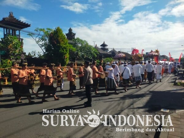 Surya Indonesia.net – Pada hari Senin tanggal 28 April 2026 pukul 07.30 wita s/d 10.00 wita Bhabinkamtibmas Desa Kediri AIPTU I Made Oka Budiastra bersama Babinsa Desa Kediri Kopka I Ketut Partana bersinergi dengan Pecalang Desa Adat Kediri yang dipimpin langsung Kapolsek Kediri Kompol Putu Budiawan melaksanakan pengamanan giat Ngemejian rangkaian Piodalan Pure Merajepati Kaler Br. Sema Desa Adat Kediri Kecamatan Kediri Kabupaten Tabanan.