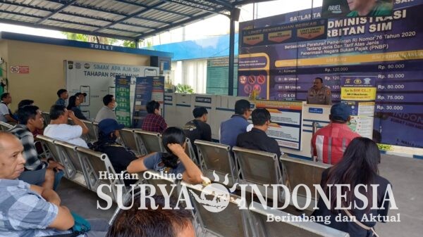 Denpasar, Surya Indonesia.net – Suasana ruang tunggu Satpas SIM Polresta Denpasar tampak tertib saat para pemohon SIM mendapatkan sosialisasi langsung dari petugas, yang tidak hanya memberikan pelayanan administrasi, tetapi juga edukasi penting terkait keselamatan berlalu lintas.