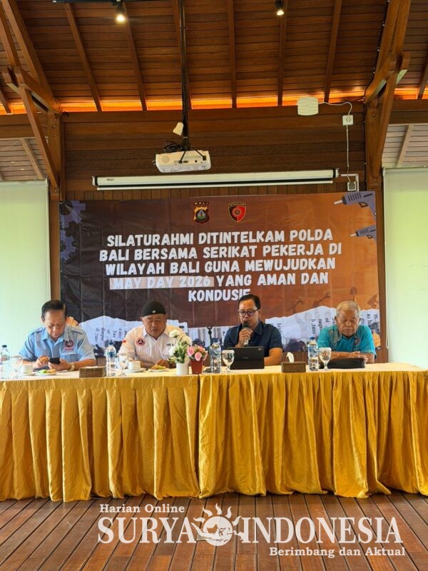 Gianyar, Surya Indonesia.net – Menjelang peringatan Hari Buruh Internasional (May Day) yang jatuh pada 1 Mei 2026, stabilitas keamanan di Pulau Bali menjadi prioritas utama. Sebagai destinasi pariwisata internasional, sinergi antara aparat keamanan dan elemen serikat pekerja terus diperkuat guna memastikan situasi kamtibmas tetap aman dan kondusif.Upaya tersebut diwujudkan melalui kegiatan silaturahmi dan komunikasi intensif antara Ditintelkam Polda Bali dengan perwakilan serikat pekerja di wilayah Bali.