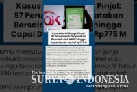 Jakarta, Surya Indonesia.net – Komisi Pengawas Persaingan Usaha (KPPU) memutuskan bahwa 97 perusahaan pinjaman online (pinjol) terbukti bersalah dalam kasus kartel suku bunga. Adapun