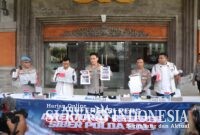 Bali, Surya Indonesia.net – Kapolda Bali Irjen Pol Daniel Adityajaya S.H., S.I.K., M.Si., saat konfrensi pers di loby Mapolda Bali didampingi, Diresnarkoba Kombes Pol