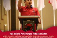 Jatim , Surya Indonesia.net – Tiga Skema Pemenangan Pilkada di Jatim. Wakil Ketua DPD PDI Perjuangan Jatim Bidang Pemenangan Pemilu Deni Wicaksono mengatakan, skema