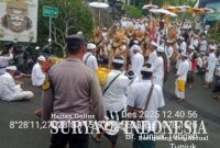 Tabanan, Surya Indonesia.net – Polsek Baturiti melaksanakan pengamanan kegiatan Melancaran Ida Betara Pucak Padang Dawa dari Pura Balai Agung Umopoh menuju Pura Desa Banjar