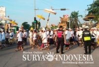 Gianyar , Surya Indonesia.net – Personel Polsek Gianyar melaksanakan pengamanan kegiatan Upacara Adat Melasti Desa Adat Serongga menuju Pantai Lebih, Kecamatan Gianyar, pada Minggu