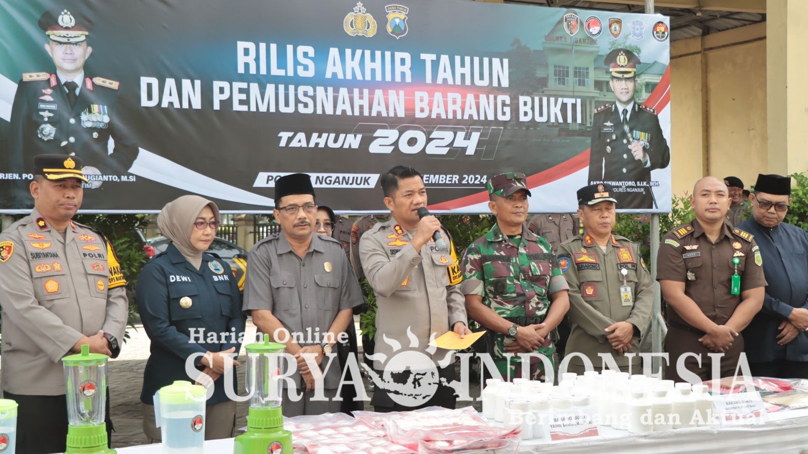 Nganjuk , Surya Indonesia.net – Polres Nganjuk AKBP Siswantoro, S.I.K., M.H., bersama Forkopimda, tokoh agama, tokoh masyarakat, dan unsur dinas terkait menggelar Konferensi Pers