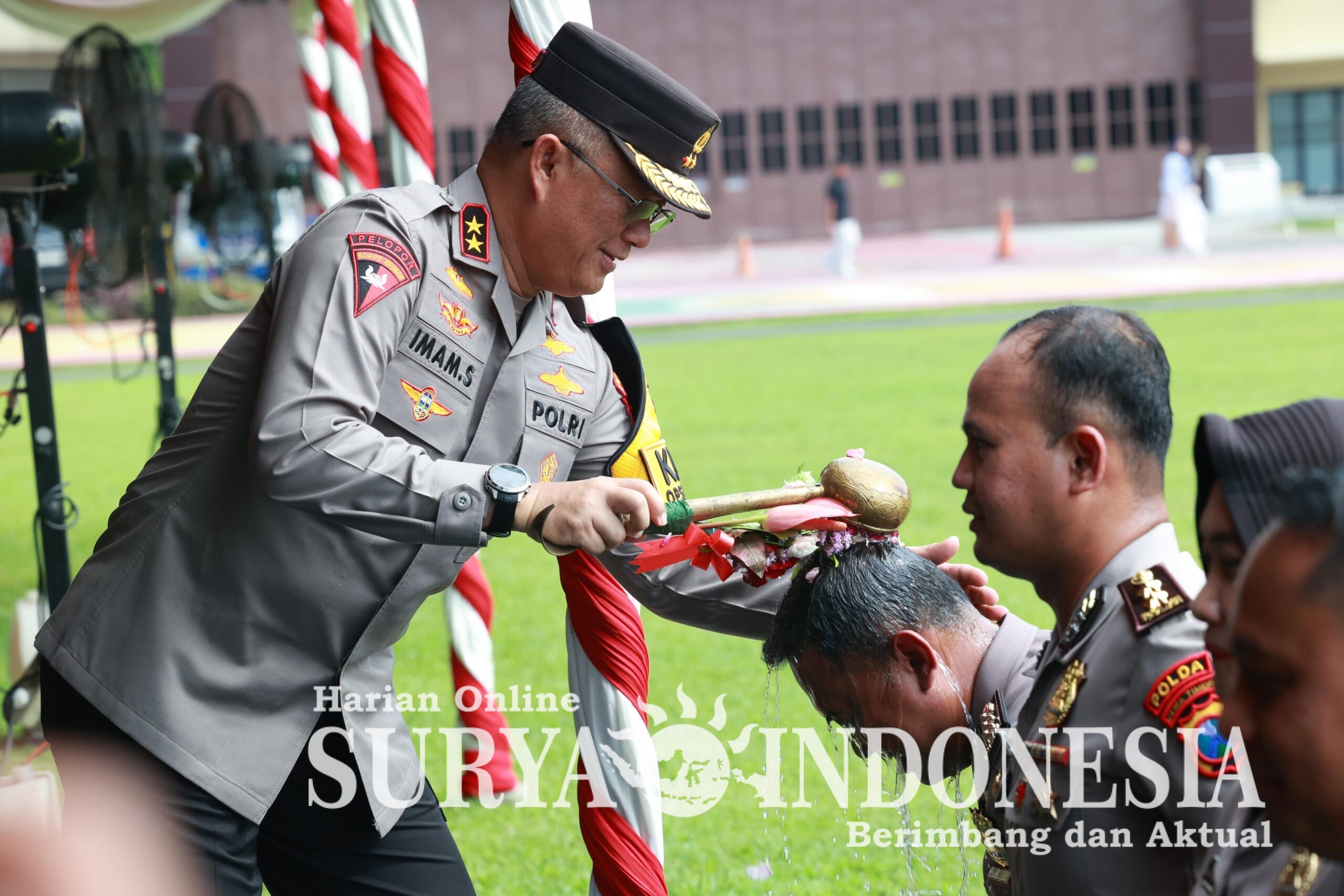 Surabaya , Surya Indonesia.net – Kapolda Jawa Timur Irjen Pol Drs.Imam Sugianto,M.Si bersama Wakapolda Jatim,Brigjen Pol Pasma Royce memimpin langsung upacara kenaikan pangkat untuk