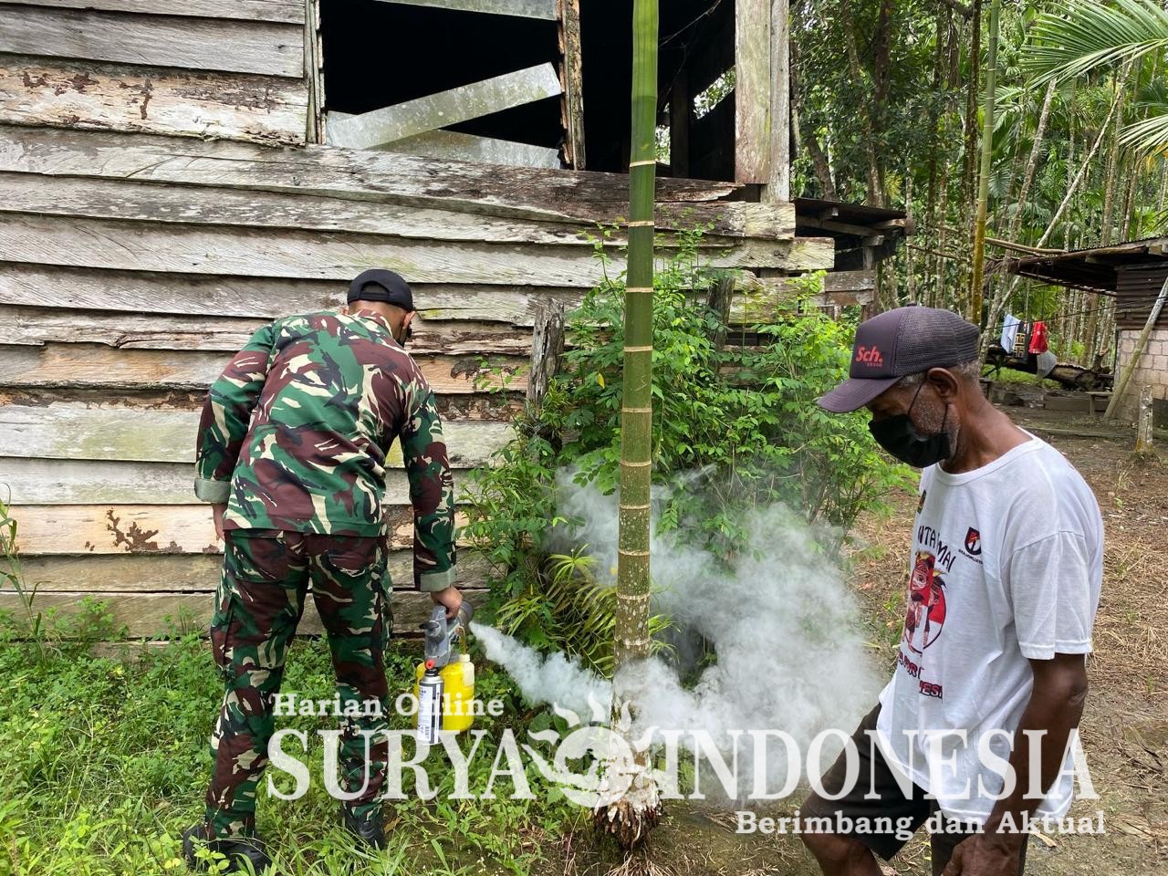 KEEROM , Surya Indonesia.net – Dalam upaya mencegah penyebaran malaria, Satgas Yonif 131/Brajasakti melalui Pos Ampas melaksanakan kegiatan fogging di rumah-rumah warga Kampung Ampas,