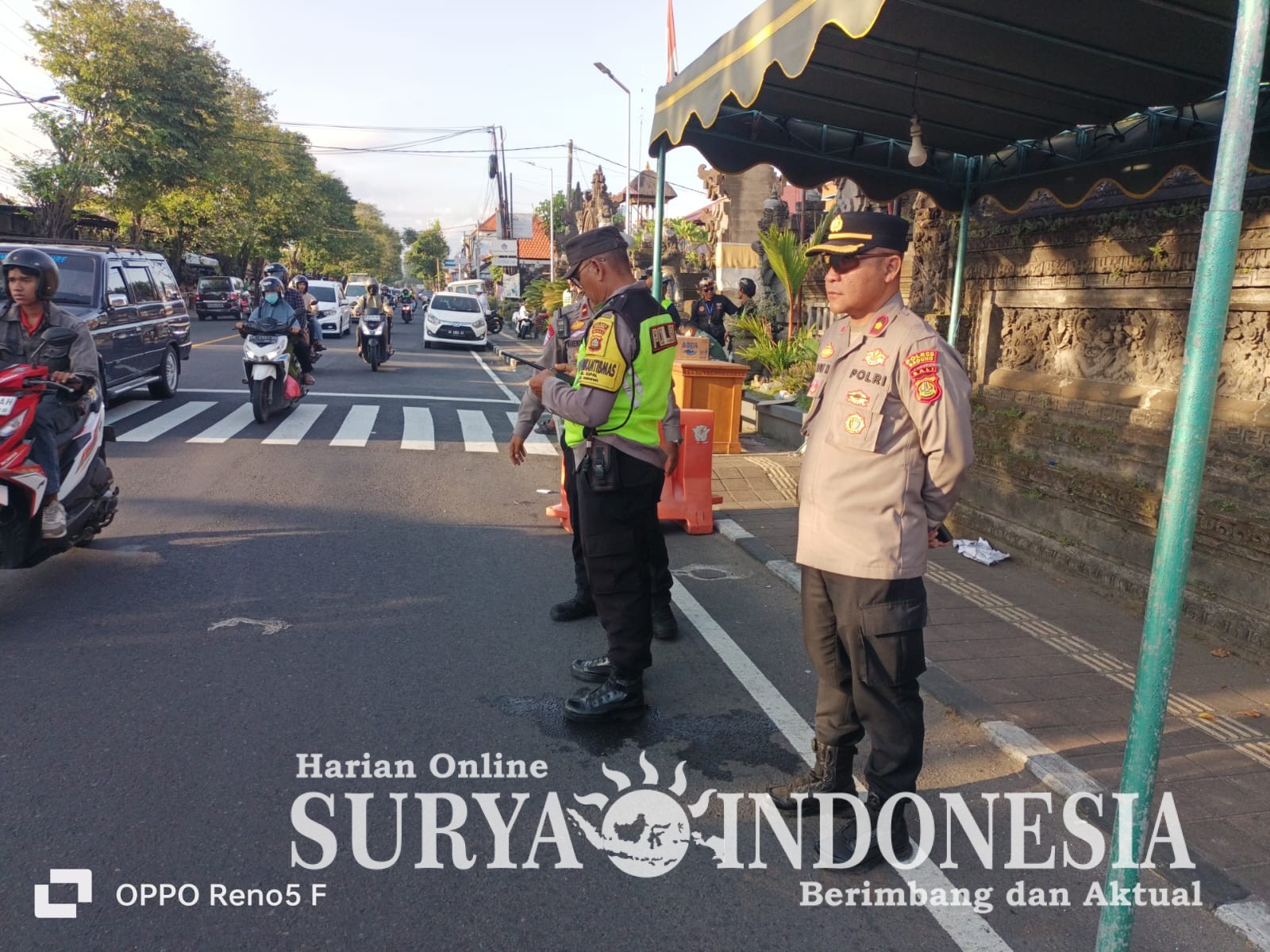 Mengwi , Surya Indonesia.net – Kepala Kepolisian Sektor Mengwi Kompol I Ketut Adnyana T.J S.Sos.,S.H.,M.M., melakukan pemantauan arua lalulintas didepan Pura Desa Adat Kapal,