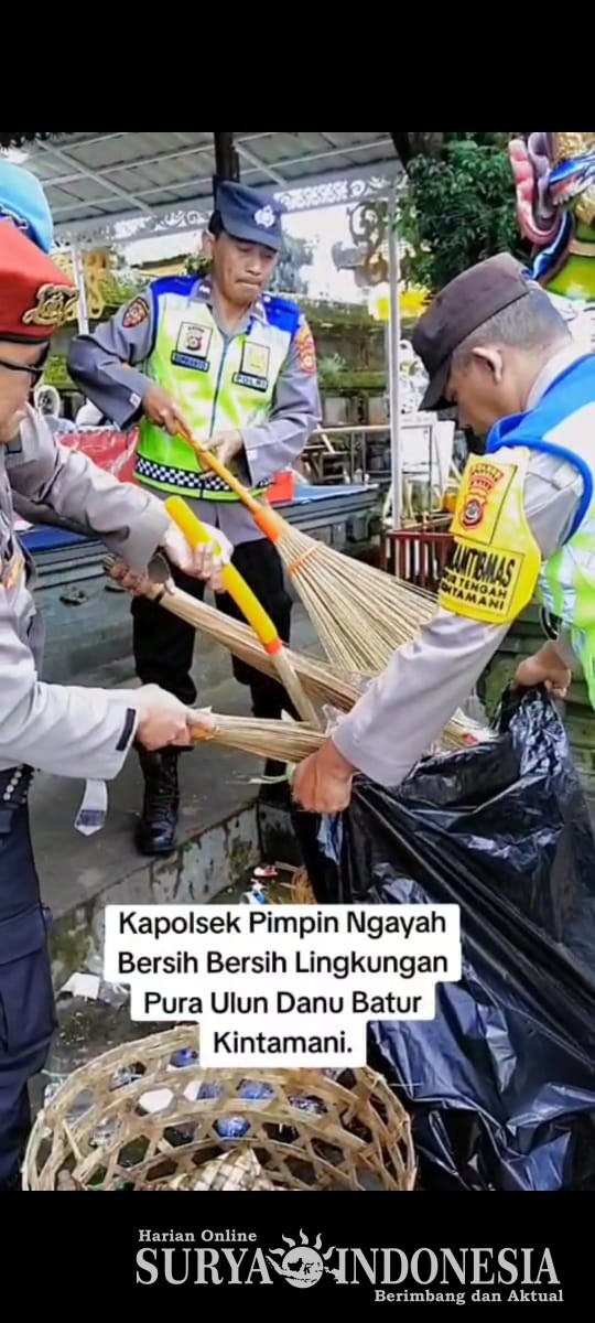 Bangli, Surya Indonesia.net – Anggota Polsek Kintamani dipimpin Kapolsek Kintamani Kompol I Nengah Sukerna, SH.,M.A.P selain melaksanakan pengamanan juga melaksanakan Ngayah Bersih bersih dilingkungan area