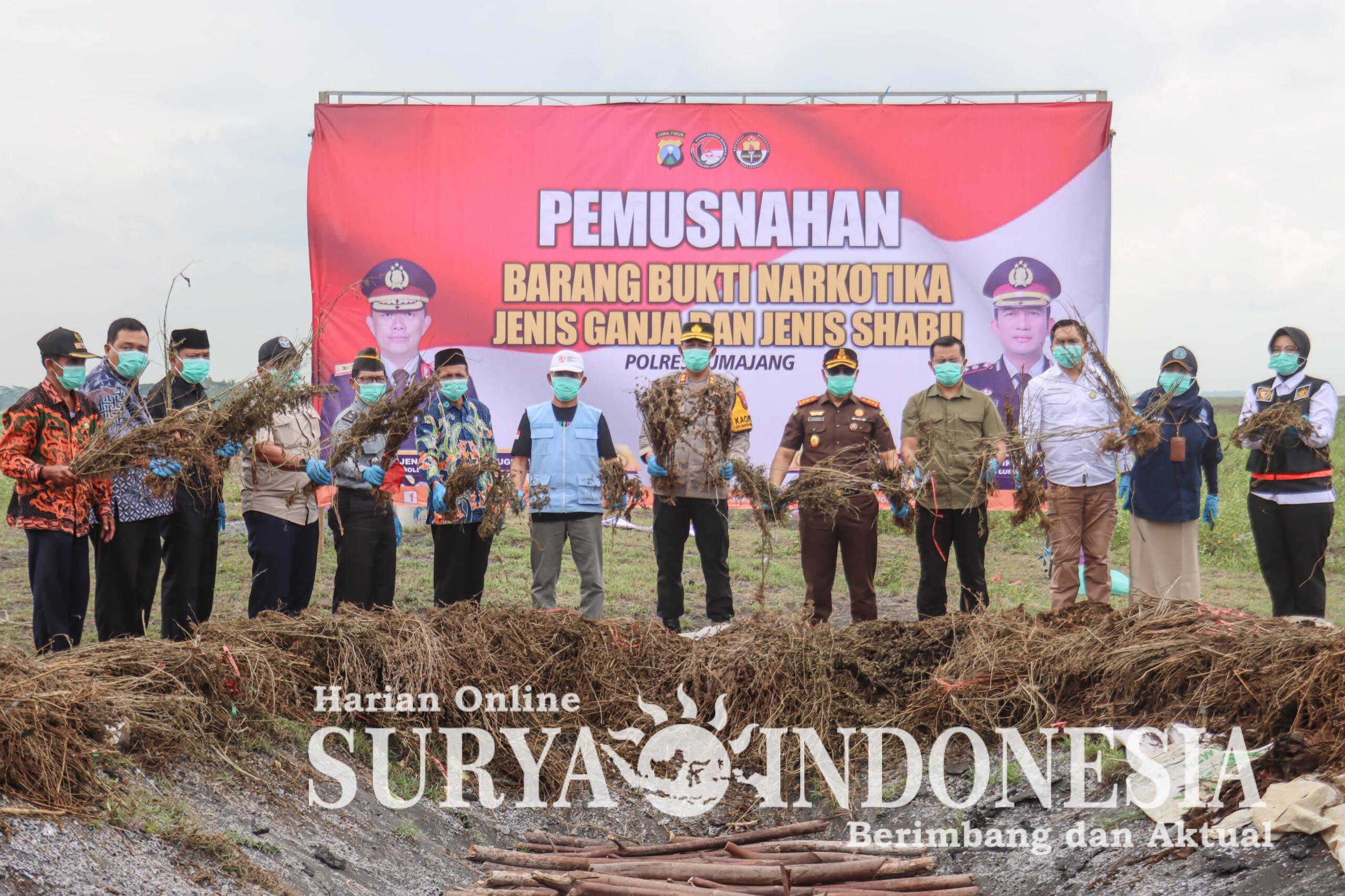 LUMAJANG , Surya Indonesia.net – Pj. Bupati Lumajang, Indah Wahyuni, yang turut hadir dalam pemusnahan barang bukti (BB) puluhan ribu batang tanaman ganja yang