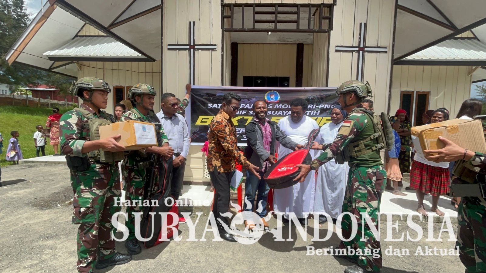 KAGO , Surya Indonesia.net – Wujud Kebahagiaan menjelang peringatan HUT Yonif 323/Buaya Putih Kali Ini berbagi kasih kepada Jemaat dan pengurus gereja Katolik St