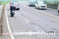 Bali, Surya Indonesia.net – Sejumlah ruas jalan nasional Denpasar – Gilimanuk, tepatnya di Jembatan Penyalin, Desa Samsam, Kecamatan Kerambitan, Tabanan, berlubang. Parahnya, lubang jalan