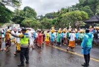 Klungkung , Surya Indonesia .net – Polsek Dawan, personel Polsek Dawan atensi kegiatan meajar-ajar rangkaian upacara pengabenan di Pura Goa Lawah desa Persinggahan Dawan,