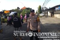 GIANYAR , Surya Indonesia.net — Aparat kepolisian bersama unsur pengamanan adat melaksanakan pengamanan kegiatan upacara piodalan di Pura Dalem Jemona, Desa Adat Lebih, Kecamatan