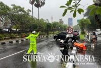 Badung , Surya Indonesia.net — Meski diguyur hujan, Satuan Lalu Lintas (Satlantas) Polres Kawasan Bandara I Gusti Ngurah Rai tetap melaksanakan tugas pengaturan lalu