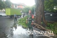 BALI – Denpasar,Surya Indonesia. Net – Sebuah pohon tumbang menghalangi lalu lintas di Jalan Yos Sudarso, Kecamatan Denpasar Timur, Kota Denpasar pada hari Sabtu,