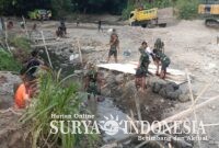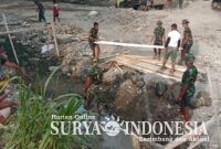 Tabanan, Surya indonesia.net – Bhabinkamtibmas Desa Tangguntiti, Aiptu I Made Suneca, bersama staf Desa Tangguntiti, melakukan kerja bakti membersihkan jembatan jalur Banjar Batan Buah