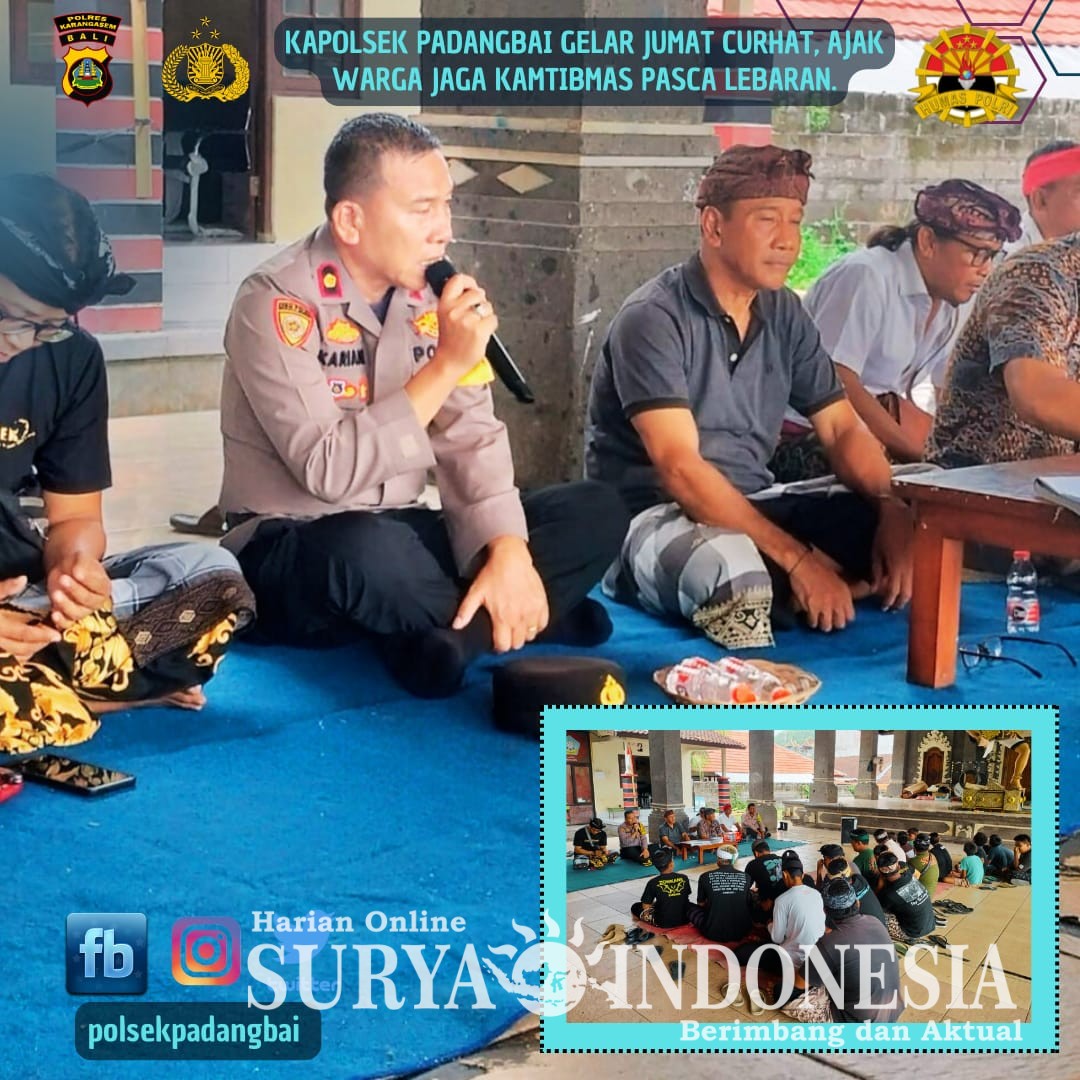 Karangasem , Surya Indonesia.net – Polsek Bebandem Program Jumat Curhat digulirkan Polres Karangasem. Dalam program tersebut, Kapolsek Bebandem *AKP I GEDE MURDANA,SH* turun langsung