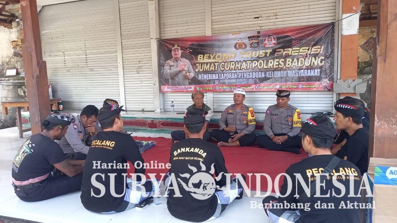 Mangupura , Surya Indonesia.net – Dalam rangka Program Beyond Trush Presisi, Kepolisian Resor Badung melaksanakan Jumat Curhat di Wantilan Desa Adat Batur Rening, Desa