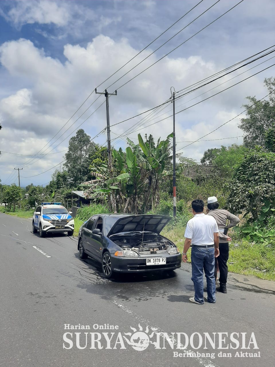 Bangli, Surya Indonesia.net – Kasat Lantas Polres Bangli Akp Ni Putu Deniani, SH membantu mobil mogok keluar asap di jalan sebelah selatan Patung Dewi