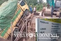 SURYA INDONESIA NET- Desa Embacang, Kecamatan Kelekar, Kabupaten Muara Enim – Sebuah truk bermuatan sawit dengan plat nomor BG 8217 ON amblas di jembatan
