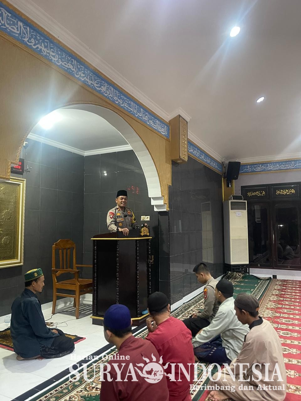 MALANG, SURYA INDONESIA, – Aiptu Jefri Wiratama mengikuti kegiatan tadarus Al-Qur’an di Masjid Al-Falah Desa Clumprit Kecamatan Pagelaran Kabupaten Malang usai melaksanakan shalat tarawih
